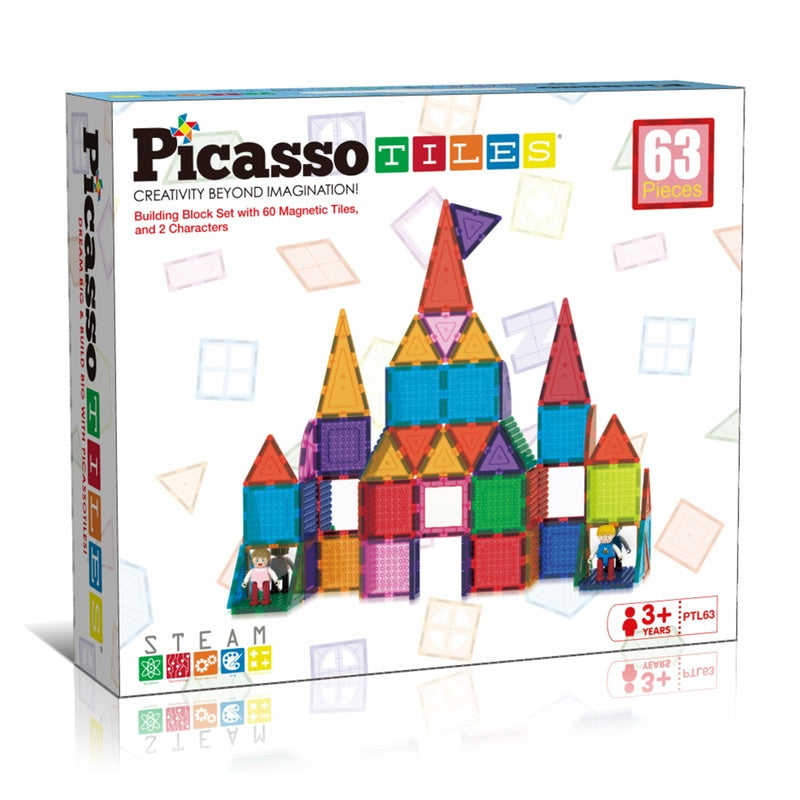 PicassoTiles Bloques Magnéticos de Ladrillos de construcción - 63 Piezas
