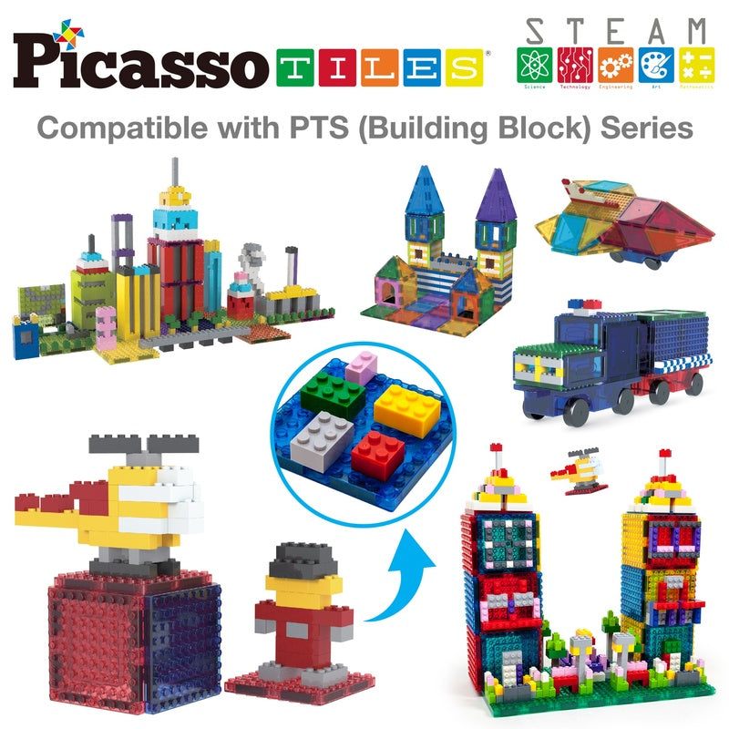 El set educativo de construcción con 63 piezas PicassoTiles (SKU: PTL63) está mejorado con imanes más fuertes, que pueden sostener hasta 8 piezas de tiles magnéticos cuadrados en una gran cadena. Completo con tiles espejados y un ladrillo magnético especialmente diseñado, que se conecta fácilmente con otros bloques de ladrillos. Experimenta la fusión definitiva de diversión con tiles magnéticos, bloques y ladrillos en un solo set completo.