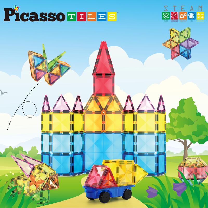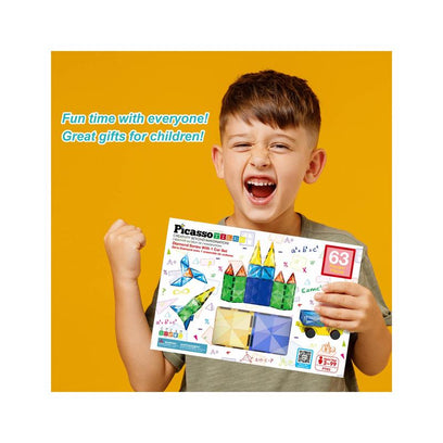 PicassoTiles Bloques Magnéticos con Base de Vehículo - 63 Piezas