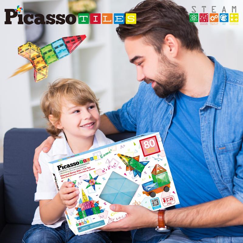 PicassoTiles Bloques Magnéticos Diamante con Base de Auto - 80 Piezas