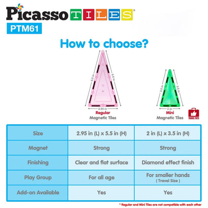 PicassoTiles Bloques Magnéticos Mini Diamante (Tamaño de viaje) - 61 Piezas