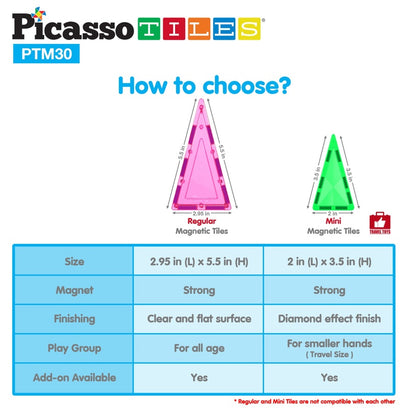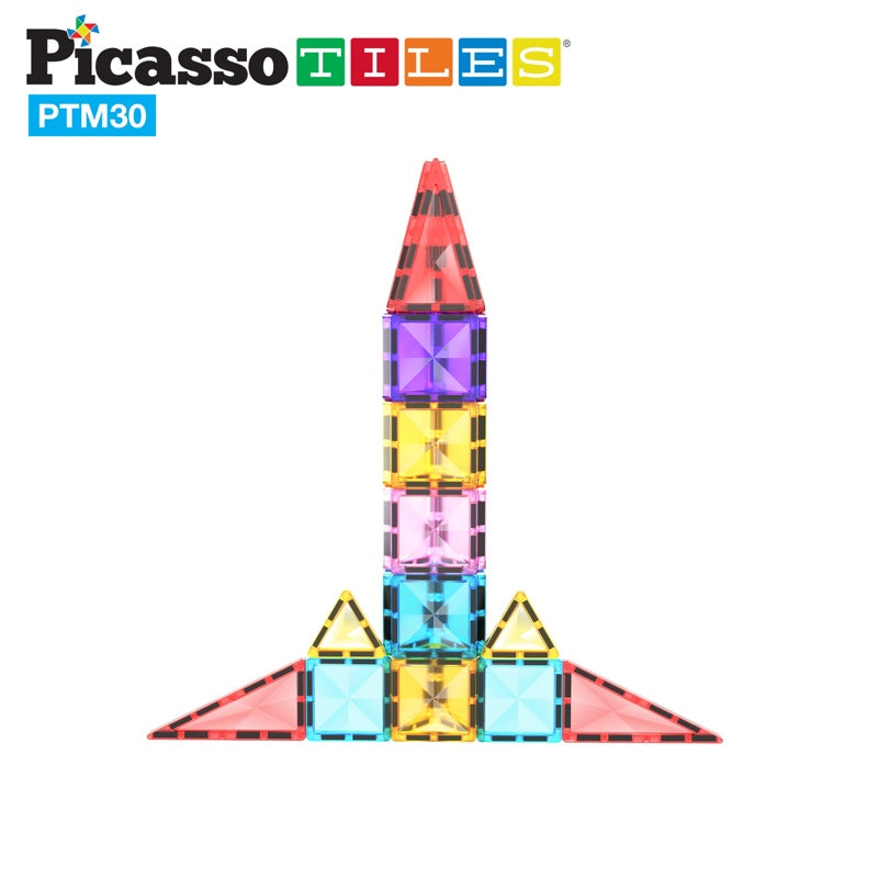 PicassoTiles Bloques Magnéticos Mini(Tamaño de viaje) - 30 Piezas